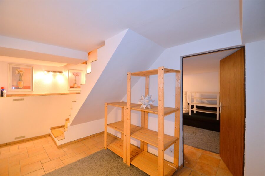 Das Dachgeschoss wurde vollständig ausgebaut und bietet zusätzliche Fläche, die aufgrund der Dachschrägen offiziell nicht als Wohnraum ausgewiesen werden kann, sich jedoch hervorragend als Hobby-, Gäste- oder Arbeitsbereich eignet.