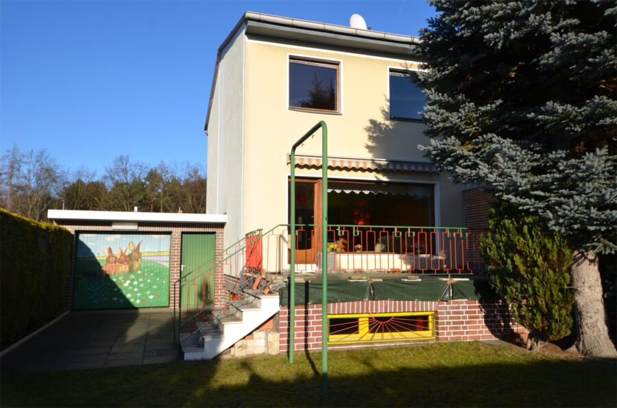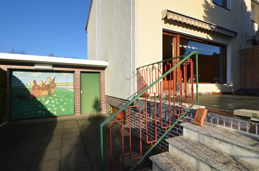 Das gesamte Grundstück ist vollständig umzäunt. Die anliegende massive Garage, sowie die 2 gepflasterten Stellplätze, runden das komfortable Wohnerlebnis ab.