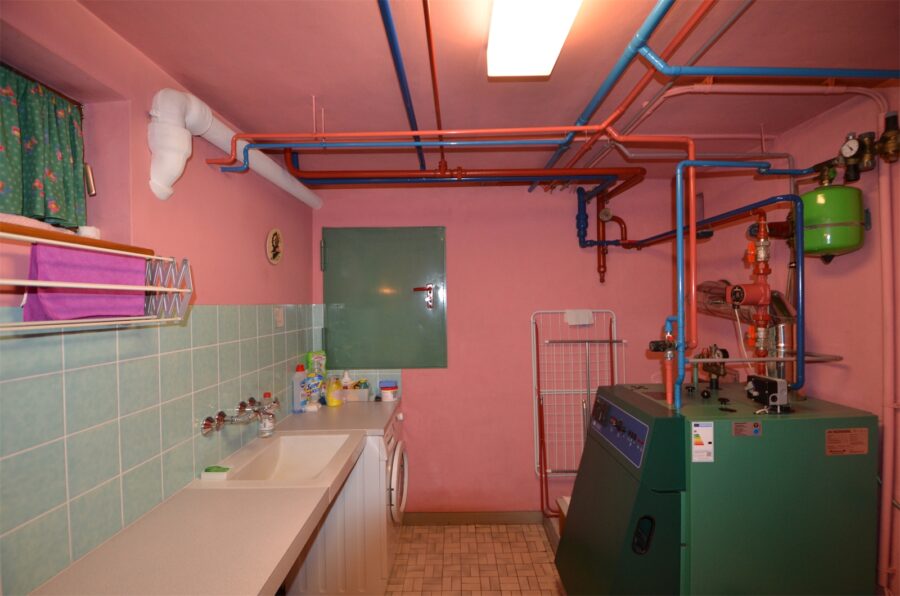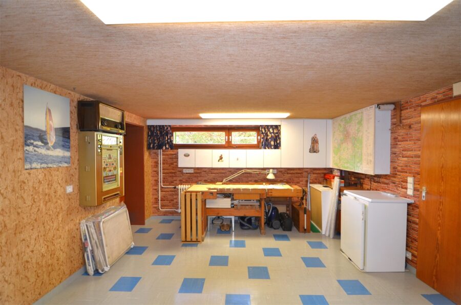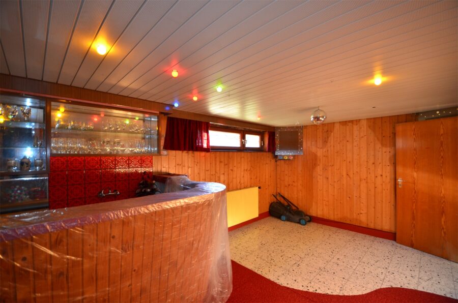 Ein weiteres interessantes Detail dieses Hauses ist der Keller mit einer Fläche von ca. 55,07 qm², der mit einem Party- und Hobbyraum viel Potenzial für Freizeitaktivitäten bietet. Ob für gesellige Abende mit Freunden, als Fitnessbereich oder als Werkstatt – der Raum lässt sich nach eigenen Wünschen gestalten und wird mit einer weiteren Dusche und einer Waschküche perfekt ergänzt.