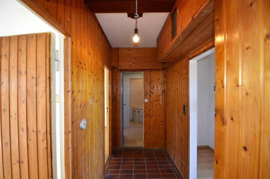 Die Wohnung befindet sich insgesamt in einem sanierungsbedürftigen Zustand und wartet darauf, mit frischem Leben gefüllt zu werden. Wer Freude daran hat, Räume nach eigenen Vorstellungen zu gestalten, findet hier die ideale Gelegenheit.