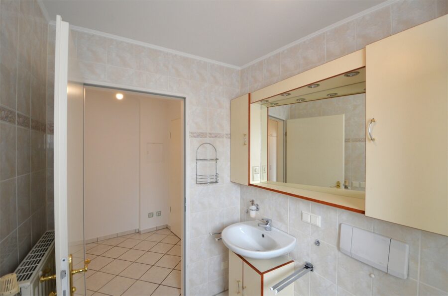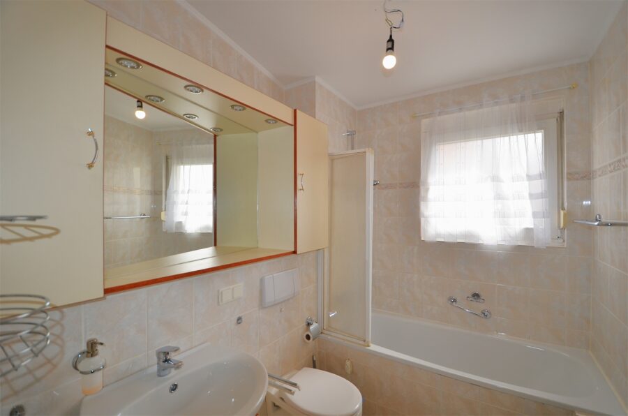 Das Tageslichtbad mit Badewanne sorgt für entspannte Momente. Die Einbauküche bietet genügend Platz für kulinarische Ideen und gemütliche Kochabende. Ein praktischer Einbauschrank im Flur sorgt für Ordnung und zusätzlichen Stauraum.